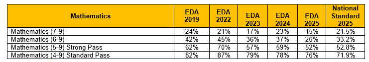 The overall performance of Mathematics has dropped slightly at the top end of the grading spectrum. Grades 7-9 comparative performance against the national standard was 15% v 21.5% and grades 6-9 comparative performance against the national standard was 26% v 33.2%. At the Government definition of a Strong and Standard pass, we have performed in line or better than the national standard (Grades 5-9 52% v 52.8% and Grades 4-9 76% v 71.9%).