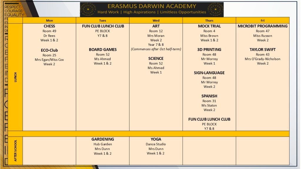 Erasmus Darwin Academy provides a wide range of opportunities to promote students interest and learning beyond the classroom.
